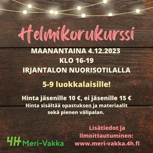 Helmikorukurssi 4.12.2023 Irjantalon nuokkarilla